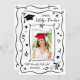 Celebrate your graduate with this fun, playful graduation invitation featuring a quirky hand-drawn doodle frame and wavy lines in crisp black and white. The front highlights the graduate’s photo with whimsical sketches—grad cap, rolled diploma with a bow, stars, sparkles, hearts, tiny flowers, and curly squiggle streamers—for a unique illustrated look that feels modern and custom. The back includes a coordinating design with “Grad Party” invitation wording and all the party details.