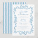 Celebrate your special event with this whimsical blue handrawn and hand written sweet sixteen birthday party invitation design. Featuring a delicate floral border and charming hand-drawn bow details, with its playful striped back, it is perfect for a trendy celebration. This coquette-inspired aesthetic offers a timeless look for your unique celebration. Created by Simply Farmhouse Press.