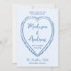 Set the tone for your celebration with this blue heart wedding invitation, featuring handwritten blue script and a hand-drawn heart on a soft light blue background. The blue color palette creates a fresh, calm look that feels both romantic and modern, while the simple style keeps the design clean and timeless. The couple’s names are displayed at the center of the heart in a handwritten script, with the wedding details arranged below for a balanced and polished layout. Suitable for year-round weddings, this invitation can be personalized with your names, wedding date, and venue to create meaningful wedding stationery that feels charming, personal, and beautifully designed.