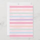 Une invitation moderne, girly et fantaisiste de premier anniversaire conçu avec une mignonne corne de licorne, des cils rose vif et souriants bouclés et une calligraphie chic lettrage du nom de la fille d'anniversaire avec une arrosée de délicate parties scintillant en or rose au centre supérieur. L'arrière de l'invitation est orné de rayures arc-en-ciel aux couleurs pastel.