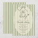 Welcome your sweet one with this sage gender neutral baby shower invitation. Designed with sage green stripes and a whimsical hand drawn bow, this modern, simple, and minimal design features a playful “oh baby” phrase in a hand written script. Perfect for a boy or girl baby shower, this cute and understated invitation is ideal for a spring summer baby shower, offering a fresh, timeless look that’s easy to personalize. Please contact me if you have any special request for custom products.