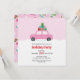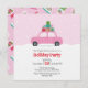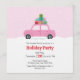 Invitation Whimsical Car with Christmas Gifts in Pink