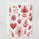 Faire-part de mariage moderne unique avec fleurs fantaisie rouge audacieuse et élégantes touches cardiaques. Parfait pour les fêtes de décembre et les mariages de vacances avec une touche florale distinctive.