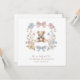 Announce your baby shower with a touch of playful elegance using this charming teddy bear themed invitation. The centerpiece is a delightful teddy bear adorned with a sweet blue bow, surrounded by a beautiful arrangement of pastel flowers and delicate greenery. The elegant script and soft color palette create a sophisticated yet heartwarming feel, perfect for celebrating mom to be's special day. This card is sure to set a joyful tone for your baby shower fun.