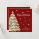 Capture the heartwarming essence of Christmas with this delightful holiday greeting card. A beautifully illustrated Christmas tree, adorned with an array of charming gingerbread cookies and festive ornaments, stands proudly against a deep red backdrop sprinkled with gentle snowflakes. This card is designed to spread joy and warmth during the holiday season. The playful gingerbread designs, including cute gingerbread men and ornately decorated cookies, add a unique and artistic touch to your seasonal correspondence. Send a memorable message that twinkles with holiday spirit.