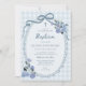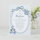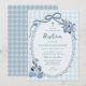 Invitation Whimsical Gingham Dusty Blue Floral Boy Baptism