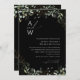 Invitation Whimsical Greenery Mariage Monogramme noir et or