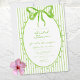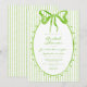 This whimsical bridal shower invitation features a bright lime green watercolor bow and an oval frame against a classic striped background. Perfect for a bridal shower with a preppy or coastal aesthetic, this charming design provides a sweet, hand-painted look for your special celebration. Created by Simply Farmhouse Press.