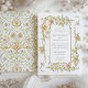 Cette faire-part de mariage romantique embrasse l'élégance ludique de l'époque Rococo, avec ses délicates fleurs pastel, ses rouleaux dorés tourbillonnants et ses fleuris botaniques fantaisistes. Le design comprend des fleurs finement illustrées dans des tons de bleu, lilas, bleu bébé et jaune doux, encadrant le texte avec un mouvement gracieux et asymétrique. Le dos présente un motif de damas floral coordonné qui ajoute de la richesse et de la texture. Idéal pour les mariages de contes de fées, les cérémonies du jardin ou les couples attirés par le charme historique et l'art romantique. Personnalisez cette invitation unique pour créer un faire-part mariage gracieux et inoubliable.