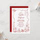 Give your guests a peek into the joyful, high-energy celebration to come with this charmingly illustrated invitation. Designed for the modern couple who values authenticity over formality, this suite captures the leading stationery trends of 2026: hand-drawn storytelling and monochromatic pops of color. Why It’s Trending for 2025 & 2026: The "Doodle" Aesthetic: High-end weddings are shifting toward "scribble" and doodle styles that feel like a personal sketchbook. It’s a move toward "Quiet Luxury" that feels approachable and warm. "Coquette" Details: Notice the delicate bows and flowing ribbons—a major 2025 trend that adds a touch of vintage romance and "ballet-core" elegance. Monochrome Red: While pastels have had their moment, bold cherry reds and deep bordeaux are the "it" colors for 2026. This two-tone red-on-white palette is chic, editorial, and timeless.