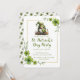 A cheerful St. Patrick’s Day invitation featuring a festive gnome, bright green clovers, and celebratory accents. All text is fully customizable, and the coordinating clover pattern is printed on the back.
