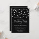 Invitation de fête d'anniversaire élégante et fantaisiste avec lumières de fée blanche pendante. Cette invitation de fête d'anniversaire en noir et blanc est parfaite pour toutes les fêtes d'anniversaire à thème. D'autres événements et d'autres arrière - plans sont disponibles.