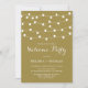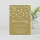 Invitation de fête de bienvenue élégante et fantaisiste, avec des lumières de fée suspendues blanches sur un arrière - plan or. Cette invitation est parfaite pour les événements nautiques et extérieurs.