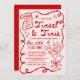 Celebrate the season with this whimsical Christmas party invitation featuring hand-drawn red illustrations and lettering on a light pink background. The design showcases Santa lounging in a martini glass alongside his list, stars, and a flowing ribbon frame surrounding your party details. “Tinsel & Tinis” appears in a fun handwritten script for a modern, trendy twist on a classic Christmas theme—perfect for holiday cocktail parties, Secret Santa gatherings, or festive soirées with friends.