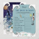 Test your guests' shopping skills with this whimsical "The Price is Right" baby shower game! This double-sided card features hand-drawn watercolor art of our signature ice blue snowy village and rearranged forest characters. Guests will love guessing the retail prices of 10-12 common baby essentials. The back is beautifully finished with our serene blue village houses, making it a lovely keepsake from the day.