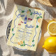 Whimsical Yellow Strip Ciao Bella Invitation de douche nuptiale Ciao bella invitation de douche nuptiale dessinée à la main avec un cadre bleu excentrique, citrons, bouteille de vin et lunettes sur un arrière - plan rayé jaune.