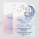 Idéal pour une petite fille ou une invitation à thème baby shower surprise. Tous les détails (nom, détails rsvp, emplacement et date/heure) peuvent être personnalisés selon vos besoinsLe design comprend un mignon pingouin assis sur une demi lune magique avec des fleurs bleues et une belle arrière - plan de brume rose et bleu des vagues partie de la collection Whimsical watercolor Jungle animal thème