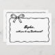 Faites de votre proposition de demoiselle d'honneur une expérience inoubliable avec ces Invitations de 'Will You Be My Bridesmaid' de Whimsical Ribbon Bow ! Dotés d'un joyeux ruban dessiné à la main et d'imperfections charmantes, ces invitations ajoutent une touche légère et artistique à votre demande spéciale.