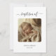 Célébrez une journée spéciale avec cette Invitation Whimsy Script Black & White Genre Baptême Neutre. Alliant simplicité et élégance, cette invitation présente une calligraphie manuscrite dans un design classique noir et blanc. Idéal pour les baptêmes de bébé et de fille, c'est un choix moderne pour un baptême catholique infantile, avec une touche de minimalisme boho rustique. L'option photo ajoute une touche personnelle, ce qui en fait un gardien chéri.