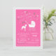 Inclure le grand frère ou la soeur en fourrure bébé dans la célébration avec cet adorable design de baby shower Whippet! Parfait pour un amoureux du chiot avec un bébé en route. Le Whippet est à côté d'une adorable calèche vintage. Le rose en fait un endroit parfait pour une petite fille en route !