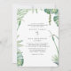 Les parents de mariées arrière - plans blanches listent les faire-part de mariage tropicaux. Le feuillage tropical.