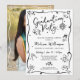 Invitation White Black Hand Drawn Doodle Photo Graduate Party