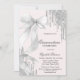 Invitation White Bow Silver Glitter Drips Quinceañera