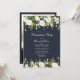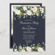 Une élégante invitation à la fête de graduation florale blanche en bleu marine, avec des motifs floraux d'aquarelle blanche, et photo à l'envers. Copyright Invitations élégants, tous droits réservés.