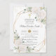 Invitation White Floral Roses Gold Cross Baptism
