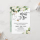White Floral Meant to Bee Bridal Shower Invitation Sweet bee bee thème de l'invitation à la douche de la nuptiale comprenant une ligne de trajectoire de vol en forme d'abeille et de coeur, deux arrangements floraux de feuillage blanc et vert, et calligraphie moderne image en titre de texte. Cette invitation à la douche nuptiale d'abeilles a un soupçon de boho.