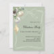 For a Christmas party with family and friends. An elegant, modern sage green background. Decorated with gold and white baubles, some greenery a pine cone and a hand-drawn bow. Personalize and add the details.
