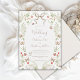 White lilacs with mixed greenery create a whimsical frame with butterflies and ladybugs, Your event details are done in coordinating fonts with a lovely vintage brown watercolor ribbon. The perfect wedding invitation for any season.