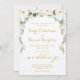 Les fleurs de pivoines blanches se rencontrent le long du feuillage argenté verdoyant et des guirlandes d'eucalyptus et d'hydrangées avec une police de calligraphie en or gaufré et fantaisie, qui est tout à fait à la mode dans les invitations de mariage. Personnalisable pour toute occasion.