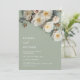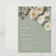 This elegant wedding invitation features textured white yellow roses on a sage green background with first names only.