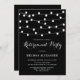 Cette invitation à la retraite élégante et fantaisiste présente des lumières de fée en suspension blanche sur un arrière - plan noir. Personnalisez en ajoutant vos détails. Cette invitation à la retraite en noir et blanc est parfaite pour les parties de retraite en plein air et d'automne.