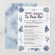 Blue and white color palette feels clean, classic, marine, and gender-neutral, appealing for co-ed showers too, with Elegant typography mix (serif + script) creates a balance between sophistication and playfulness.