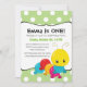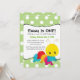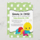 Un design neutre et mignon pour la première fête d'anniversaire d'un enfant, cette invitation présente une chenille de dessin animé colorée sur un arrière - plan à pois de polka des deux côtés. Montré ici en vert clair, vous pouvez changer l'arrière - plan vert à n'importe quelle autre couleur en utilisant l'option customiser.