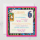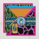 Impressions de Safari, girafe, zèbre, guépard et motif à pois de polka, avec singe accroché sur une vigne et étiquettes d'apparence 3D, arcs, trims, carte d'invitation pour six ans.