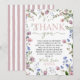 Send a heartfelt thanks with this wildflower-themed card. Matches the boho floral "Wild One" set with lovely watercolor garden blooms and forget-me-nots. A perfect way to express gratitude after your girl's first birthday celebration. Elegant and timeless stationery.
