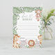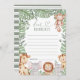 Invite guests to share sweet wishes with this adorable Wild One message card! Featuring watercolor jungle animals — giraffe, elephant, lion, tiger, and monkey — framed by lush tropical leaves. Perfect for a first birthday time capsule, baby shower advice card, or memory keepsake. Personalize with your child’s name for a meaningful touch that matches your Wild One jungle theme.