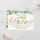 Cette mignonne invitation à l'anniversaire comprend des animaux de safari à l'aquarelle avec des accents de feuilles tropicales et des confettis de feuilles d'or faux.
