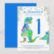 Invitation Wild One T Rex 1er anniversaire fête bleue