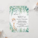 Pour le 1er anniversaire du bébé. Un arrière - plan blanc. une petite petite girafe mignonne, des fougères à l'eucalyptus et des fougères boisées. Personnalisez et ajoutez le nom et les détails du parti. Texte : Wild One