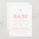 The front showcases delicate floral line art and refined typography, while the back includes space for important shower traditions such as Books for Baby, Diaper Raffle, Display Shower wording, and registry information—all in one coordinated design.