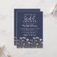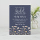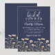 Muted Colorful Botanical Simple Watercolor Wildflower Boho Bridal Shower Invitation. Perfect for spring through autumn celebrations, this minimalist boho design features a rich navy blue background on both sides for a bold, elegant, and timeless look. A delicate border of muted wildflowers sits along the bottom, with gentle blooms like poppies and daisies in shades of dusty blue, blush pink, yellow, orange, lavender, and more for a soft, artistic contrast against the deep backdrop.