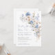 The design features a burst of watercolor florals positioned to the right, showcasing a beautiful mix of dusty blue, beige, and white flowers. Soft sage green leaves add a gentle, earthy accent that keeps the look calm, elegant, and inviting.