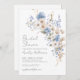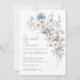 The design features a burst of watercolor florals positioned to the right, showcasing a beautiful mix of dusty blue, beige, and white flowers. Soft sage green leaves add a gentle, earthy accent that keeps the look calm, elegant, and inviting.