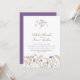 Pretty botanical wildflowers and soft grasses watercolor wedding invitation with QR code on white with pretty entwined harebells and heather flowers in soft muted blue and purple monogram and a selection of soft muted brown pink grasses and wildflower art along the bottom all hand painted watercolors. Delicate fall to winter feel botanical art invite with script text on white and a muted pink, brown, blue, mauve, purple color palette. Personalize with your own initials, names, wedding date, time, venue, further details and QR code to your wedding website on the back. Other matching items are available. Original hand watercolor wildflower paintings and design by Sarah Trett for www.mylittleedenweddings.com