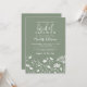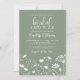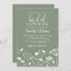 Simple Wildflower Boho Bridal Shower Invitation. Perfect for spring through autumn celebrations, this minimalist design features a sage green background on both the front and back for a soft, calm, and timeless look. A simple white outline wildflower art border sits along the bottom, creating a clean green-and-white palette that feels elegant, modern, and subtly cute.