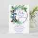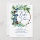 Invitation Winter baby shower snowy pines wreath dusty blue